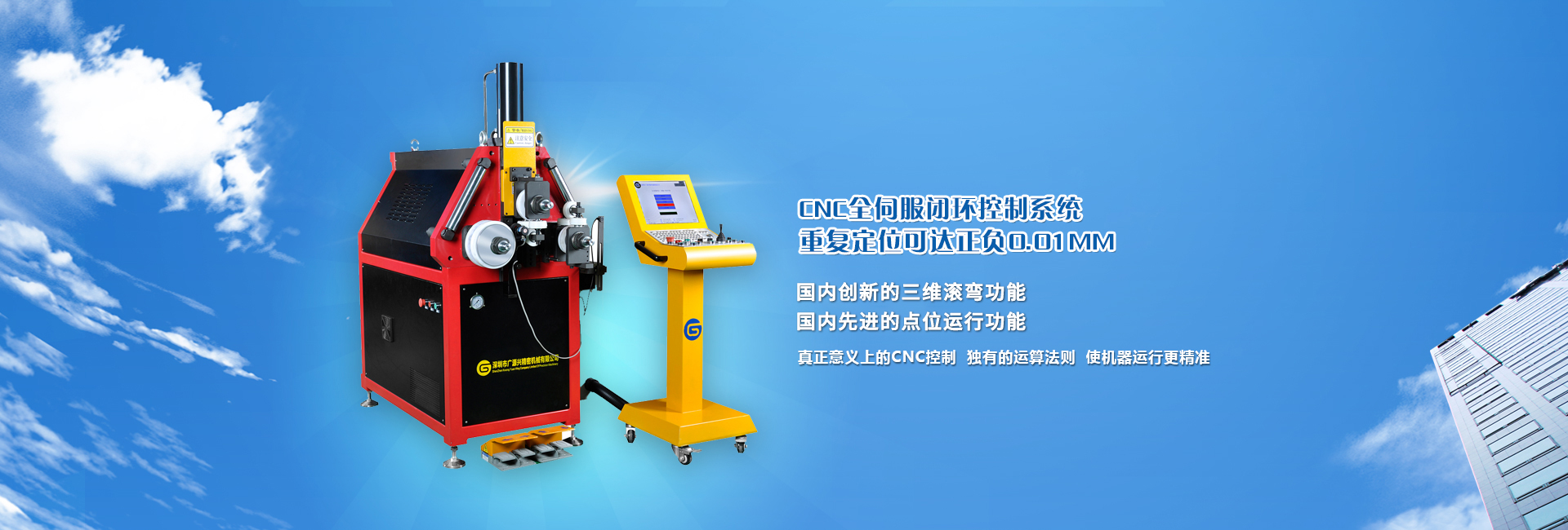 是一家專業研發、制造各種類型數控滾彎機的高科技有限公司,公司生產的滾彎機可對各種型材、管材及金屬材料進行冷彎加工,例如鋁門窗、汽車行李架、汽車高鐵結構件、電梯扶手、游艇結構件、衛浴不銹鋼管材以及燈飾彎曲等,應用于高速火車,汽車、船舶,大型建筑、橋梁、風力發電、航空等高端領域。